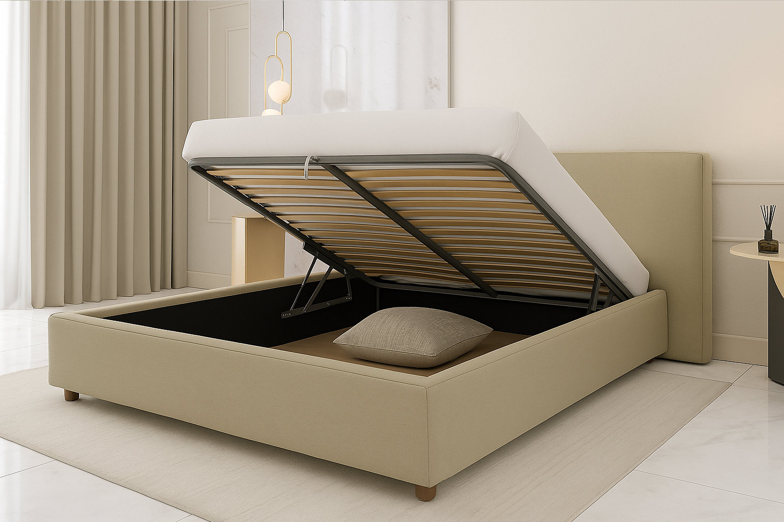 Το κρεβάτι Amalfi συνδυάζει κομψότητα και άνεση σε έναν αρμονικό σχεδιασμό. Με απλές, καθαρές γραμμές και επένδυση σε απαλό ύφασμα, δημιουργεί μια αίσθηση ηρεμίας και πολυτέλειας στο χώρο. Η στιβαρή του κατασκευή και η προσεγμένη λεπτομέρεια στην ταπετσαρία το καθιστούν ιδανικό για σύγχρονες κρεβατοκάμαρες που επιζητούν διακριτική φινέτσα και διαχρονικό στυλ. Διαθέτει αποθηκευτικό χώρο με εύκολο μηχανισμό ανύψωσης, ιδανικό για την τακτοποίηση του χώρου.