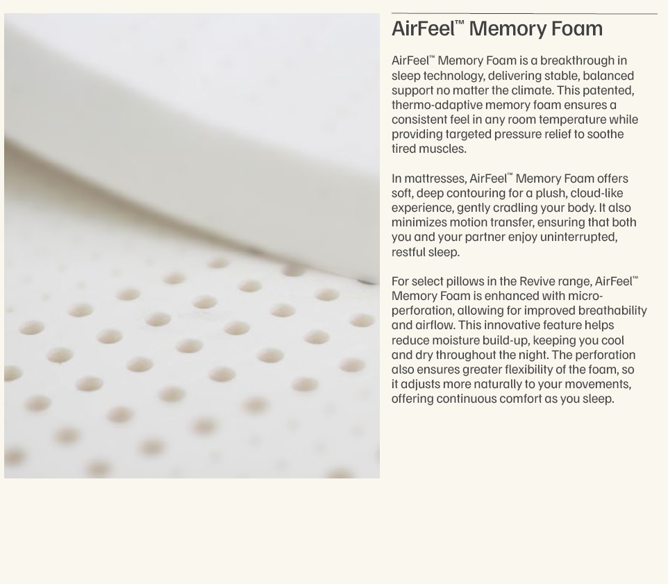 Η επάνω στρώση των 5cm Air Feel™ Gel Infused Memory Foam προσφέρει μία σταθερή, “αέρινη” και απαλή αίσθηση που παραμένει ίδια ανεξαρτήτως θερμοκρασίας δωματίου.