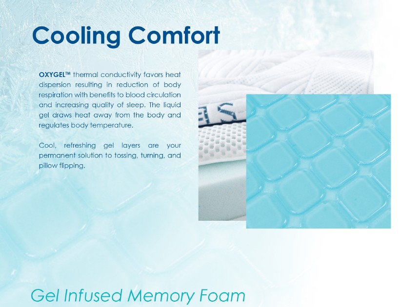 Το στρώμα ενσωματώνει τεχνολογία OXYGEL® Cooling, η οποία: